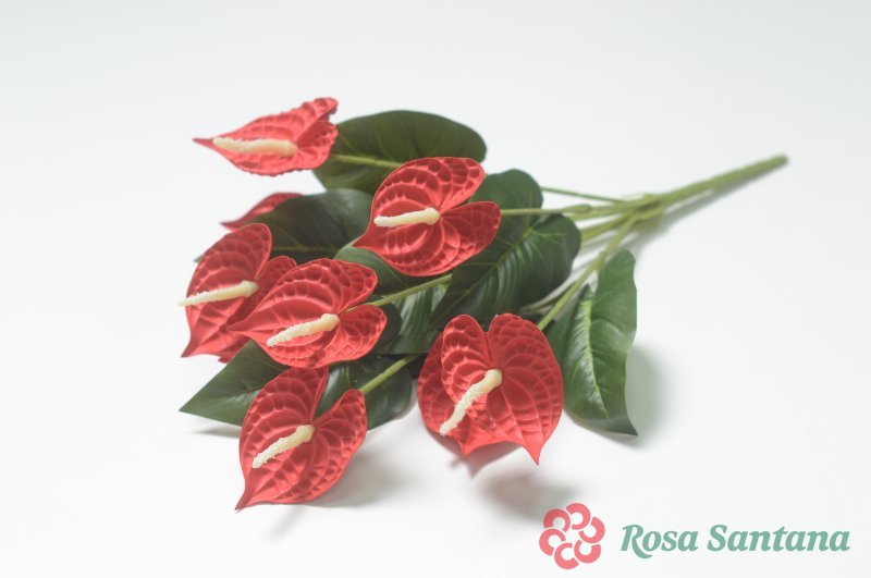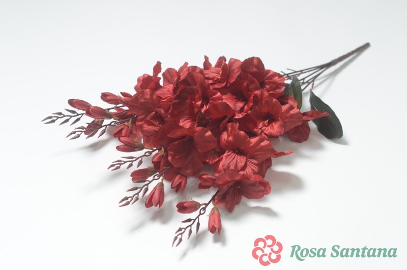 Ветка в букете мак бархатный с серебряной тычинкой 7 голов (1010237) красный
