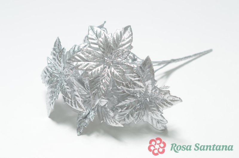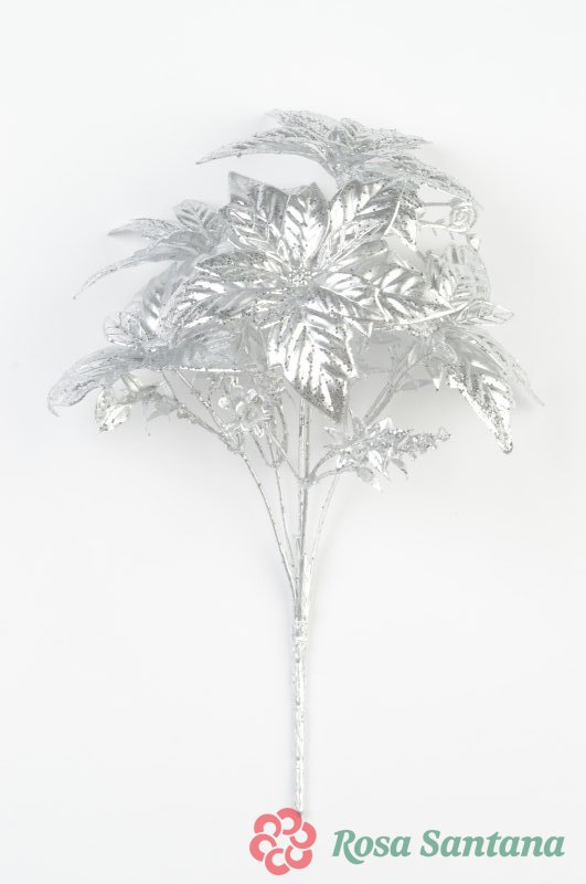 Ветка в букете пуансеттия мерцающая 5 веток
