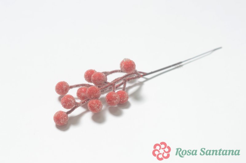 Ветка ягоды 13 ягод в сахаре для декора красный