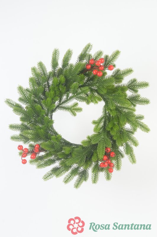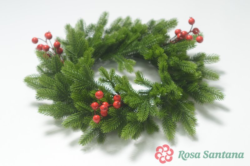 Новогодний венок малый с ягодой зеленый комбинированный
