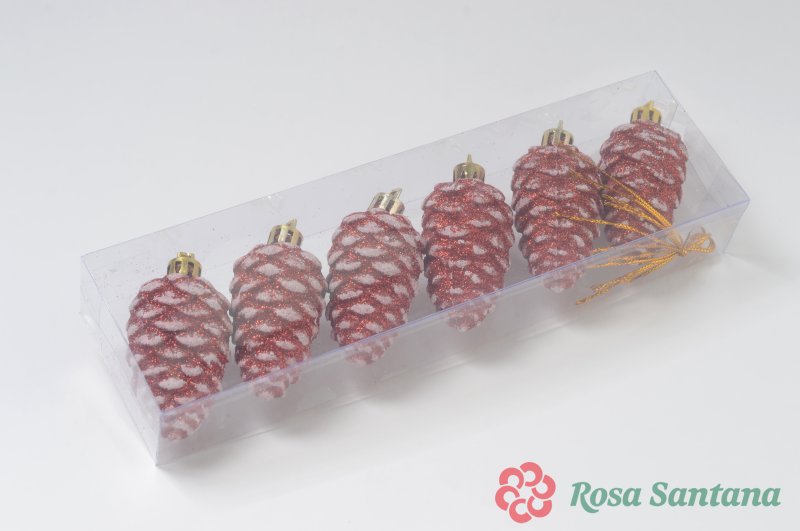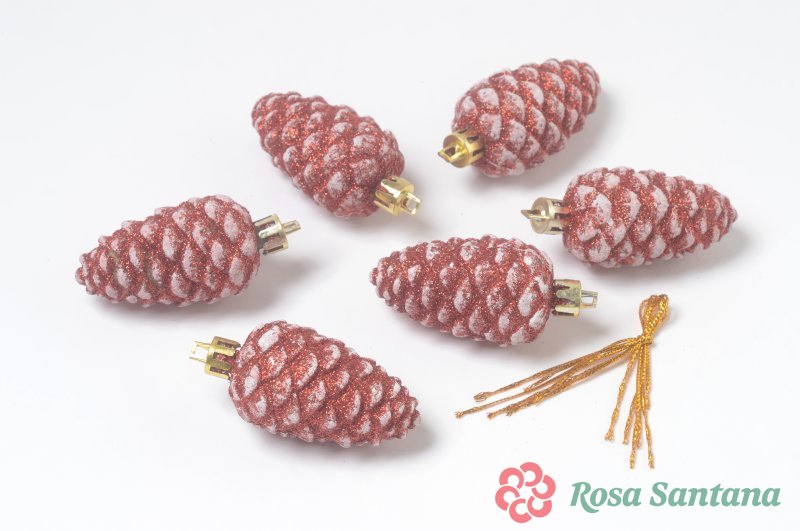 Елочное украшение Шишка с золотом (уп.6 шт) красный