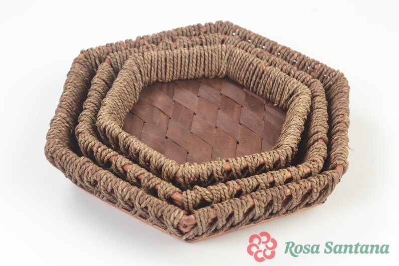 Набор корзин (3 шт.)(шестиугол.)(20)(D41*37,Н-7)(D34*30.5,Н-5,5)(D28*24.5,Н-5см) натуральный